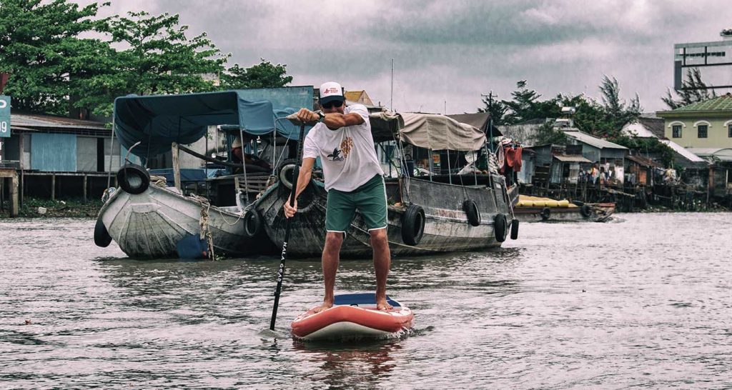 Stand Up Paddling is an ancient practice, born in the Pacific islands where fishermen stood on their pirogues to see fish in the distance and rowed to fight the waves coming out of the reefs. When they came back from fishing, they took advantage of the thrust of the waves using the paddle as a rudder, hence surfing. Traces of this can also be found in Africa, over 2,500 years ago, where fishermen used flat boats with bamboo poles as a paddle both in rivers and at sea.